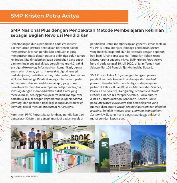 4.0 menuntut institusi pendidikan berbenah dalam visi PPPK Petra, menjadi lembaga pendidikan Kristen