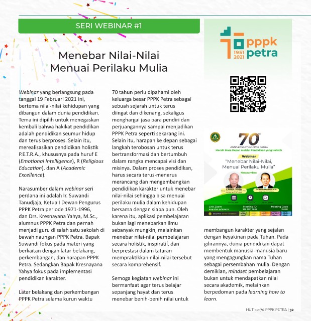 PPPK Petra selama kurun waktu menebar benih-benih nilai untuk learn.