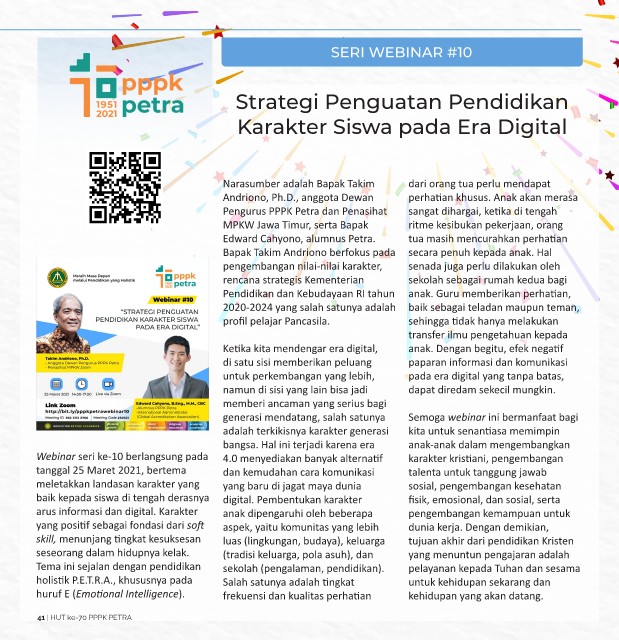 Webinar seri ke-10 berlangsung pada 4.0 menyediakan banyak alternatif karakter kristiani, pengembangan