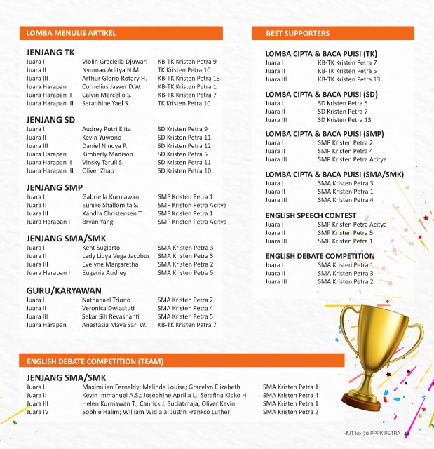 Juara Harapan II Vinsky Taruli S. SD Kristen Petra 11 Juara III SMP Kristen Petra Acitya