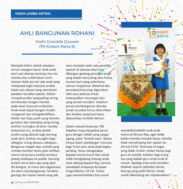 Bangunan megah atau artistik yang bagi Tuhan pun anak-anak begitu (Amsal 22:6). Tentunya ini tugas