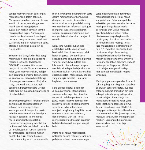 suasana ramai dan kehebohan kelas, di rumah masing-masing. Petra