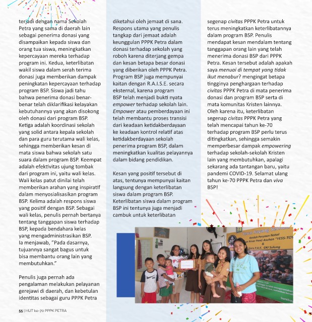 program BSP. Siswa jadi tahu eksternal, karena program civitas PPPK Petra di mata penerima