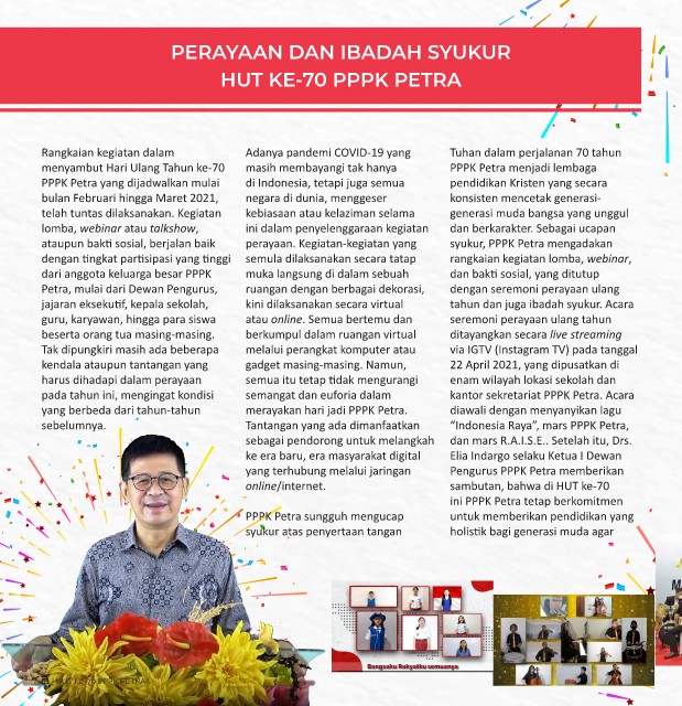 ataupun bakti sosial, berjalan baik perayaan. Kegiatan-kegiatan yang syukur, PPPK Petra mengadakan