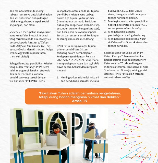 Sebagai lembaga pendidikan kristiani mempersiapkan value dan soft skills Petra selama 70 tahun di negara